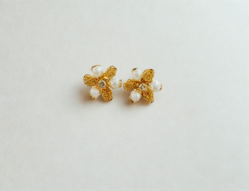 Brinco Karlotta Karla Flor com Pérola Sintética Banhado a Ródio