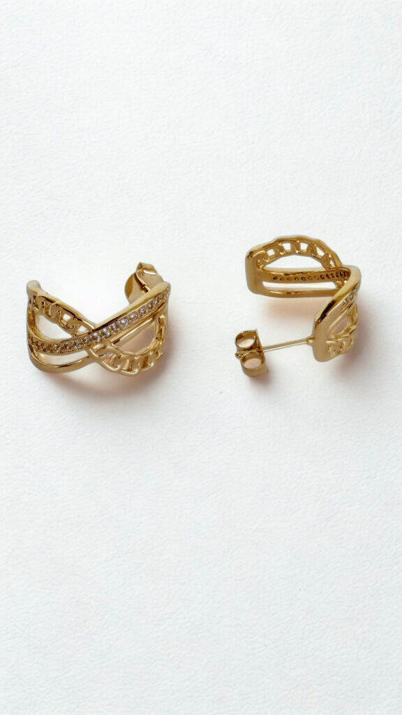 Brinco Karlotta Maria Izabel Infinito com Pedras Banhado a Ouro 18k
